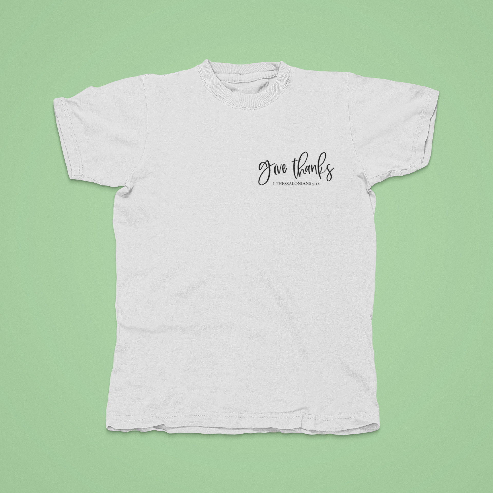 Keep an attitude of gratitude… and let the world know about it too! This “give thanks” design is positioned on the left chest in a subtle yet neat way.